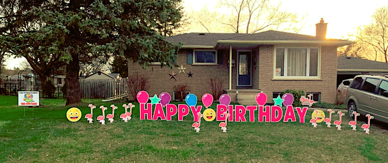 Rental Package Includes the 2' foot tall letters, that spell "Happy Birthday", with Balloon Signs, *plus an assortment of Emojis and Flamingo Theme Signs, for up to 24 hours.