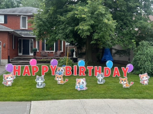 Rental Package Includes the 2' foot tall letters, that spell "Happy Birthday John !" (and # of years if desired), with Balloon Signs, *plus an assortment of Emojis for up to 24 hours.